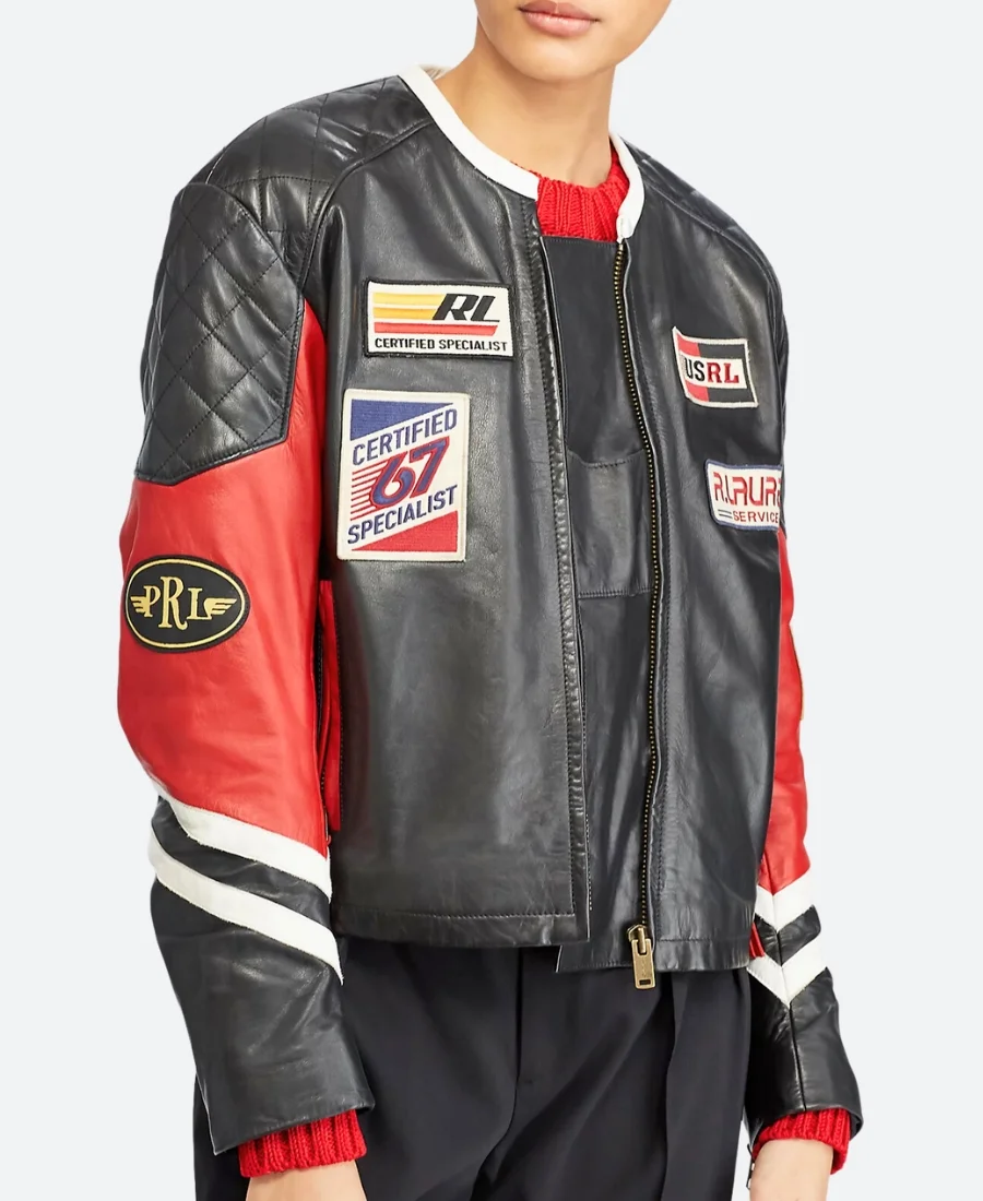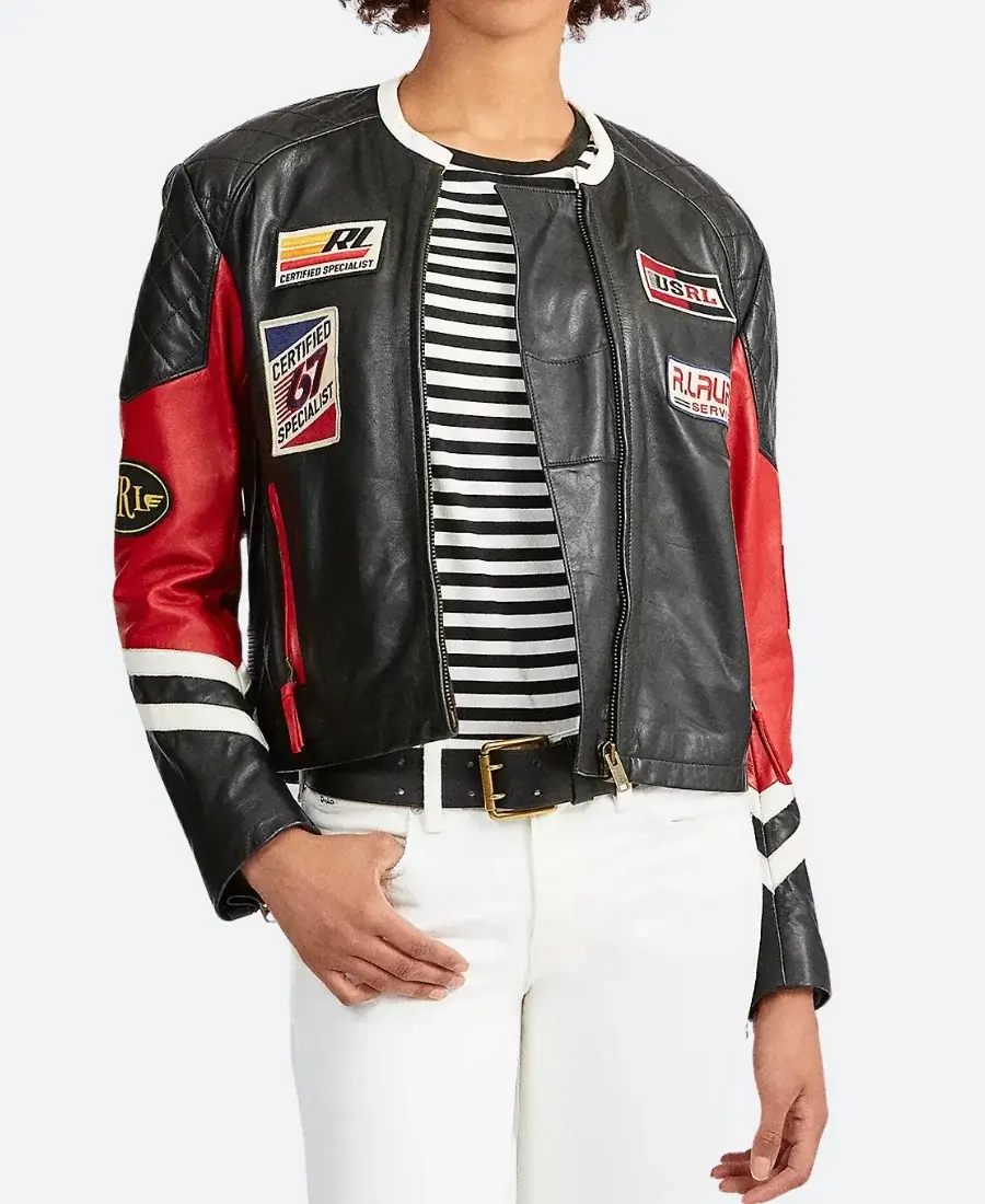 Nina Dobrev Paris 2024 Olympics Black Leather Biker Jacket